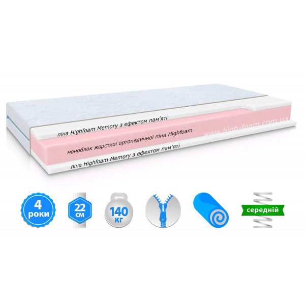 беспружинный матрас с блоком пены Highfoam и пены с памятью с обеих сторон