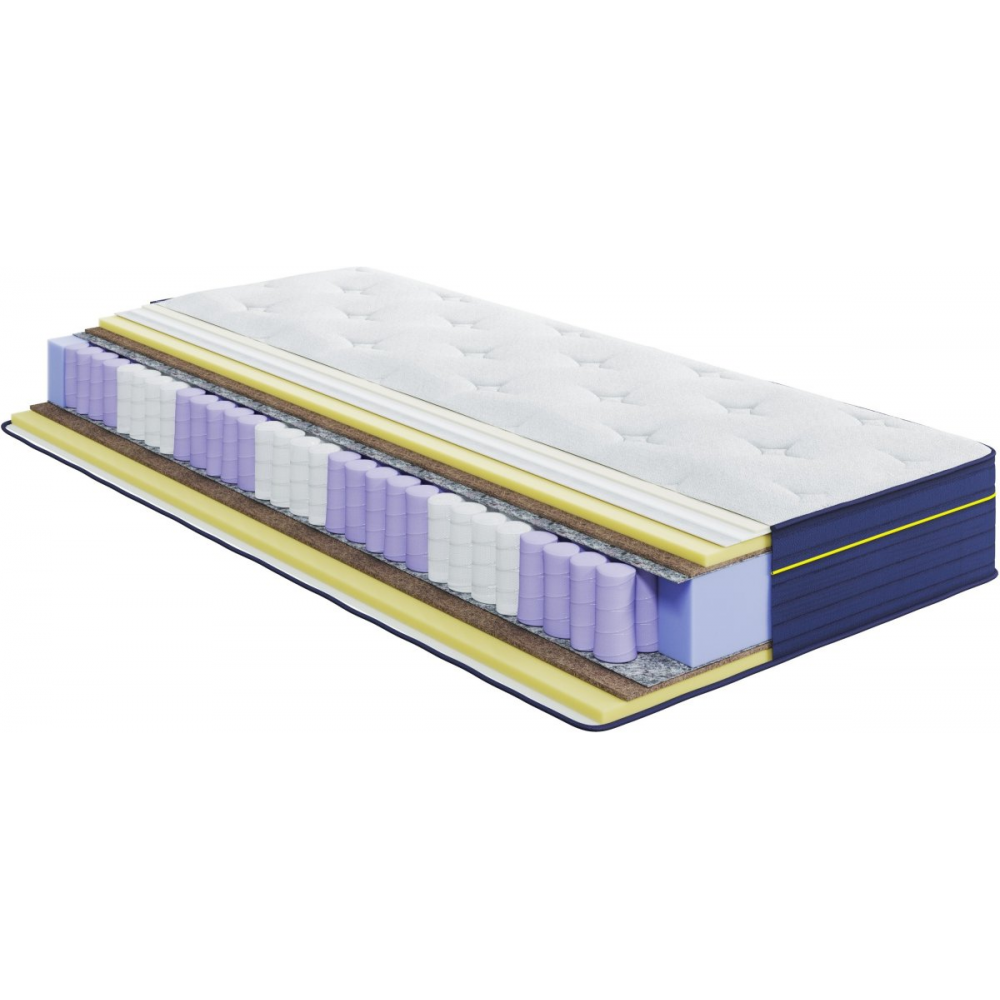 Слои кокосовой койры с обеих сторон матраса придают ему дополнительную жёсткость и упругость, усиливая ортопедический эффект и значительно повышая долговечность матраса. Боковины матраса из прочной ткани Bluetex обладают высокой износостойкостью и стильным современным дизайном, что позволяет сохранять идеальный внешний вид матраса даже после длительного использования.