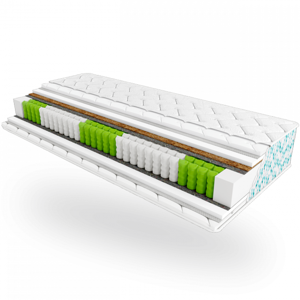 Coconut coir – это натуральный, экологически чистый материал, созданный из прочных волокон кокосового ореха и обработанный натуральным латексом для улучшения его свойств. Латексация придает волокнам дополнительную упругость, высокую прочность и исключительную износостойкость, благодаря чему материал легко выдерживает значительные нагрузки и долго сохраняет свою форму. Использование кокосового койра в составе матраса обеспечивает ему оптимальную жесткость, усиливает ортопедический эффект и создаёт удобный формат «2 в 1»: одна сторона изделия становится более плотной и упругой, а другая остаётся умеренно жесткой и комфортной. Такая конструкция позволяет выбрать подходящий уровень поддержки и гарантирует надежный, здоровый сон на протяжении всего срока службы матраса.